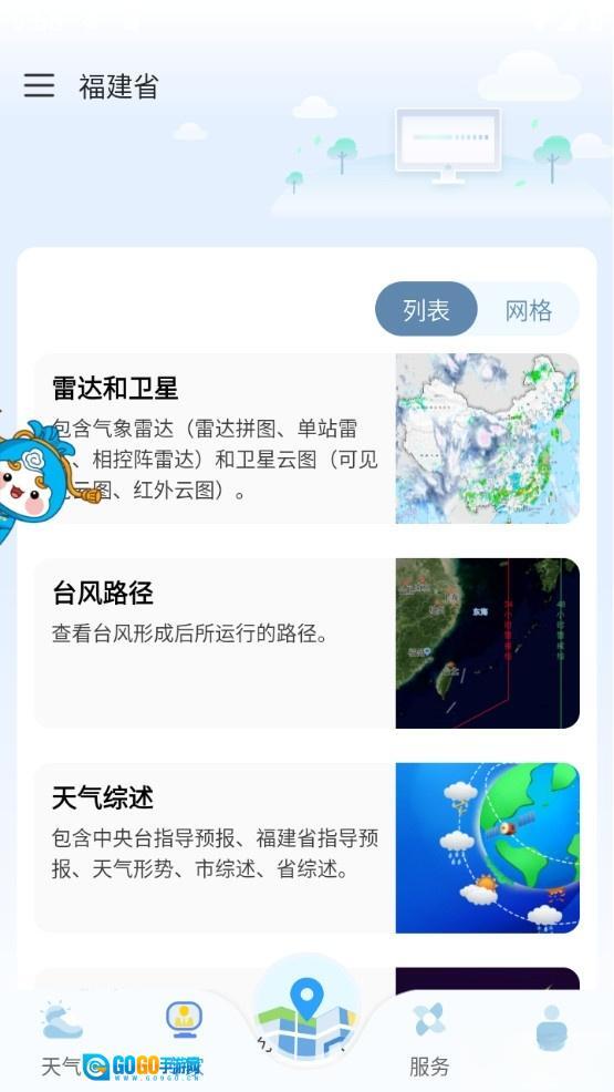 提供全国3000多座城市(福建省内含县市区级)的当日常规天气预报、实况天气信息,以及预警信息的滚动提示。
