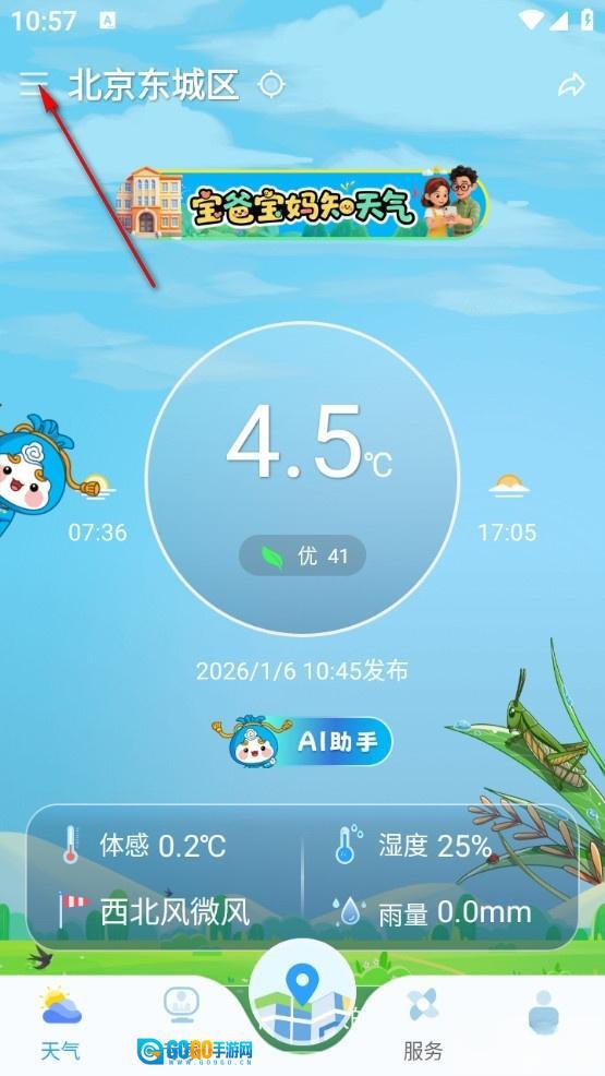 最后返回主页即可查看切换后的城市天气