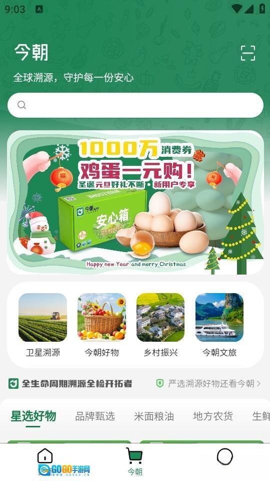 今朝商城是一款专注优质农产品的电商导购软件,平台汇聚水果蔬菜、海鲜冻品、坚果干货等优选商品,用户可随心挑选高质量好物,满足多元购物需求,让线上选购心仪商品更省心,尽享全新一站式购物服务;软件内还有海量优惠福利,不定时发放超值优惠资源,助力用户轻松享受商品折扣,降低线上购物成本,获得愉悦网购体验;此外,今朝严格筛选高质量商品,支持一键溯源,全程把控商品质量,为购物提供品质保障,让线上选购好物更放心。