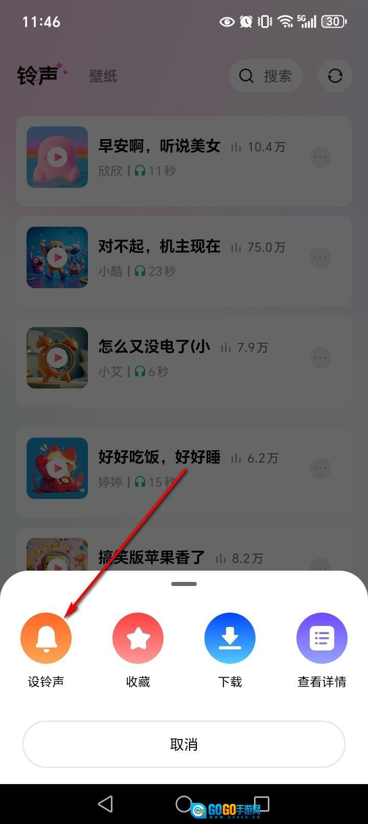 点击【设铃声】