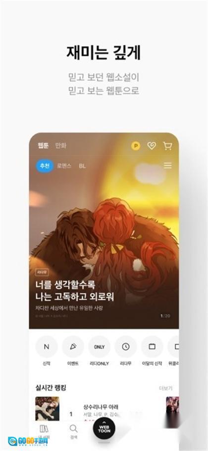 平台以韩语内容为主,涵盖小说、散文、漫画、杂志等多种类型,尤其以网络小说(Web Novel)和轻小说(Light Novel)闻名。