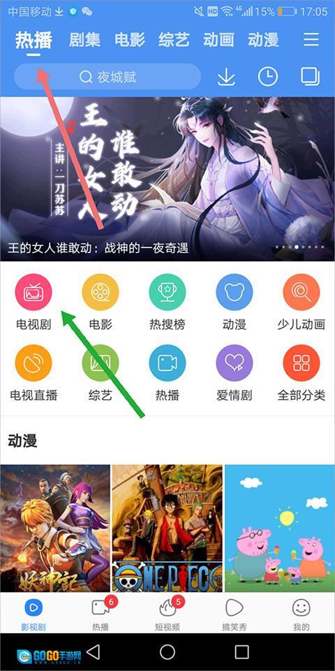 还有一种方法是将顶部的分页导航栏切换到【电视直播】板块(即下图中绿色箭头标注的区域),这样用户就能浏览到各大地方卫视正在热播的电视剧了。