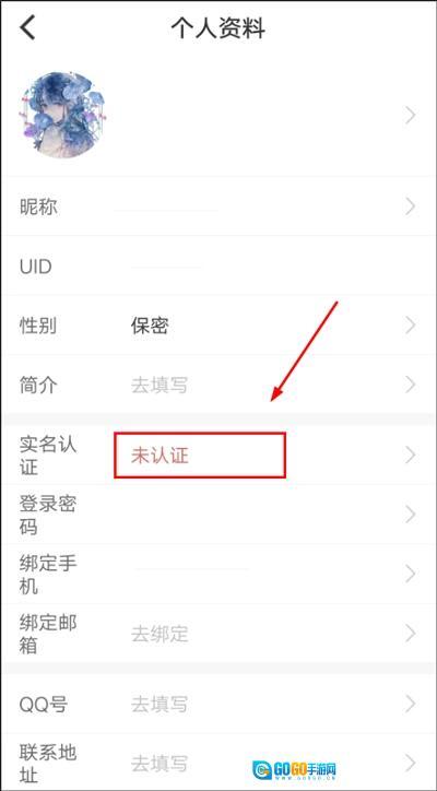 3、在【个人资料】页面,点击【实名认证】