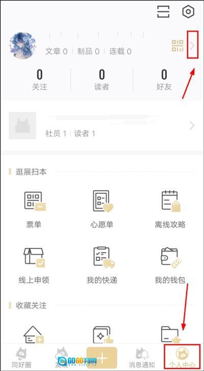 1、登录CPP无差别后,点击底部的【我的】进入【个人中心】页面,接着点击页面右上方的箭头,即可进入个人主页。