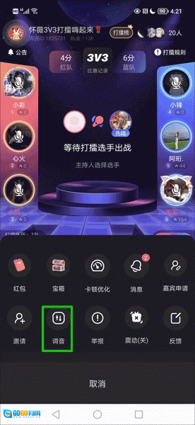 3、在弹出的功能展示栏中选择并点击“调音”的选项;
