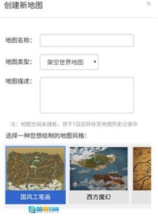 3选择你偏好的地图风格,填写所需的地图信息,完成创建后就能着手绘制了。