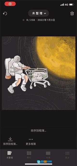 在单张照片上向上滑动,即可选择将其归档到预设相册(如“家庭”、“旅行”);向左滑动直接移入回收站。告别传统的长按、多选、移动的繁琐步骤。
