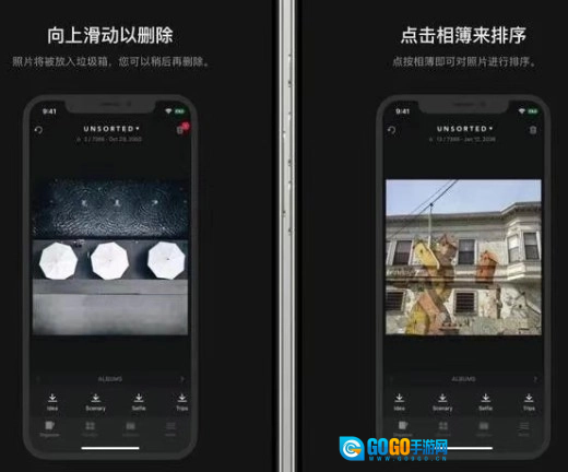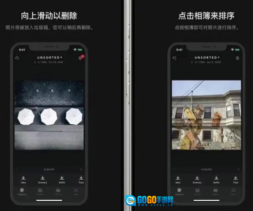 1、上滑删除图片,点击相册就会分类到相册,简单易用的逻辑,分类整理照片非常简单方便。