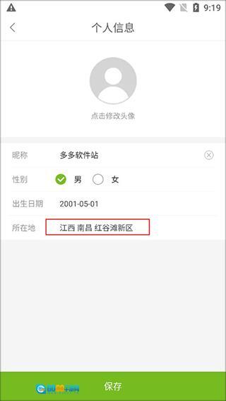 在个人信息页面点击所在地。