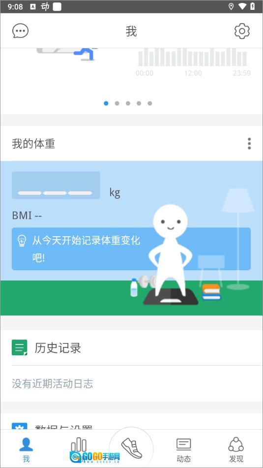 1、首先打开动动计步器应用,进入“我的”页面后,直接点击右上角的设置图标即可。