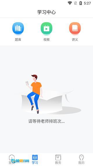 3、回到主界面后,点击“学习”选项,这里包含了题库、视频、讲义三大学习板块。