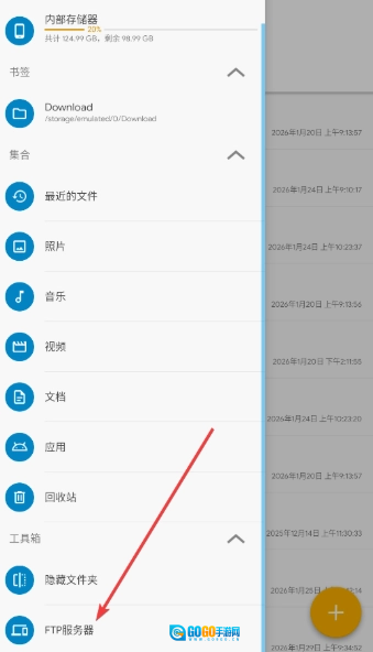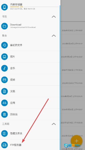2、把弹出来的栏目滑动到最下方,点击FTP服务器