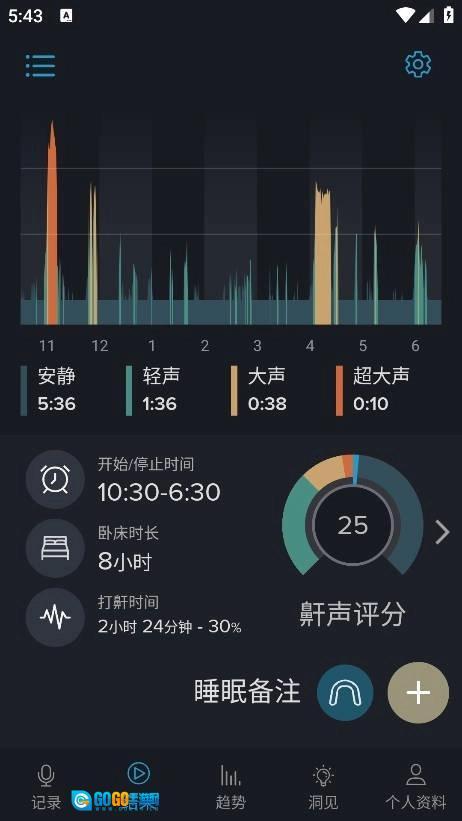 SnoreLab是一款专业的移动端睡眠鼾声监测与分析工具。它能借助手机麦克风在夜间持续录音,再通过算法智能识别并分析用户的鼾声模式、强度和频率。这款工具可以把难以主观察觉的打鼾问题转化为数据并进行可视化呈现,为用户生成客观的睡眠报告,助力用户追踪打鼾的变化趋势,同时关联生活习惯,为想要改善打鼾状况的用户提供科学的自我观察依据。