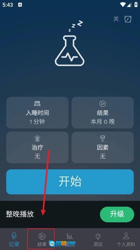1、进入鼾声分析器后点击下方导航栏的【结果】。