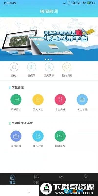 嘟嘟教师是专为幼教工作者设计的班级管理工具,它帮助教师高效处理日常园务工作。通过这款软件,教师可以便捷查看家长留言、掌握班级学生基本信息与考勤状况,同时各类通知也能及时获取;软件提供了直观的管理方式,让园所沟通与事务安排变得轻松有序,喜欢的就在本站。
