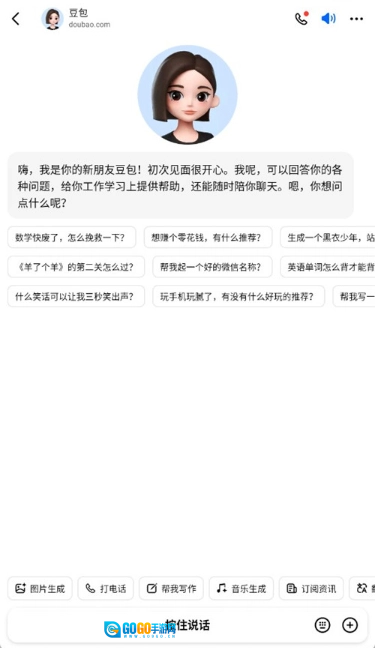 3、进入豆包人工智能即可开启聊天页面。