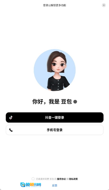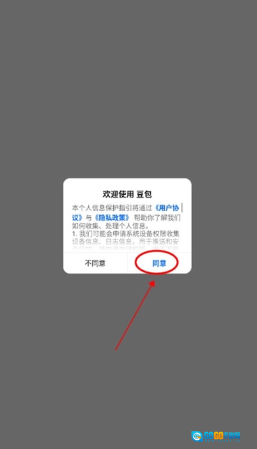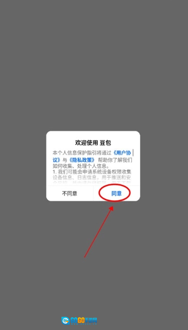 1、开启豆包人工智能后,先点击同意用户使用协议。