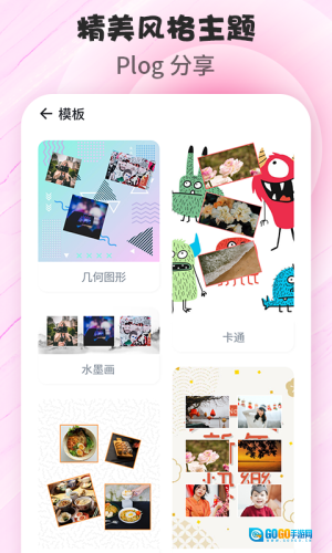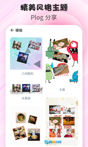 1.可拼接各类图片并自由搭配文字,内含9个当下热门的朋友圈模板,支持自定义边框、调整图片顺序以及二次编辑功能;