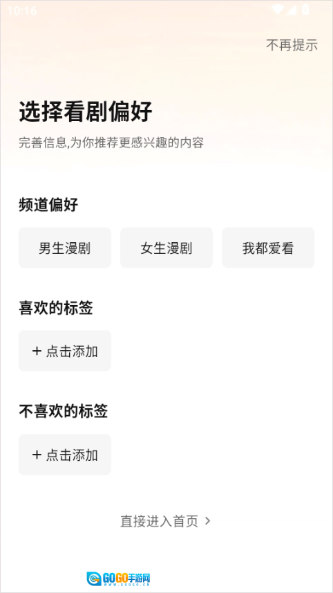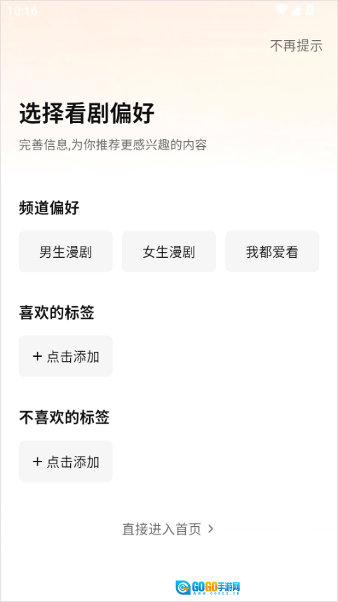 1、在本站完成七猫漫剧的安装后,启动软件并设置你的看剧偏好。