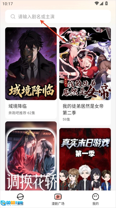 2、你可以在下方的推荐内容里挑选自己感兴趣的,也能在上方的搜索框中输入剧名或者主演来查找。