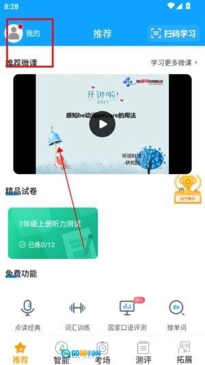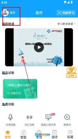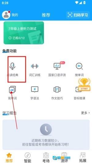 3、进入个人中心查看智能分析报告,明晰听力、单词等方面的薄弱之处,然后有针对性地挑选专项训练来提升相关能力。