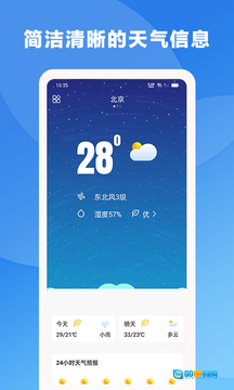 天气信息简洁直观,能直接查看所在地的天气状况,各项信息清晰明了。