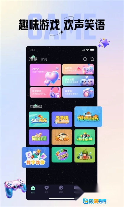 平台上有谁是卧底、你画我猜、五子棋、友尽闯关等十几款互动小游戏,既能玩游戏又能结交新朋友。