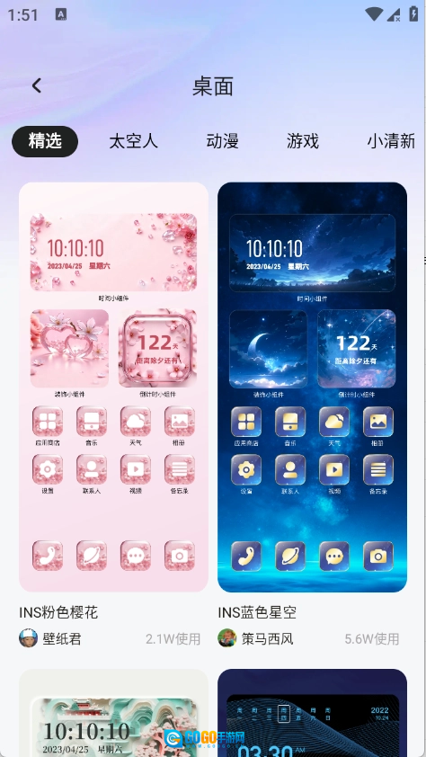 3、桌面类型丰富多样,涵盖太空人、游戏、小清新等多种风格。