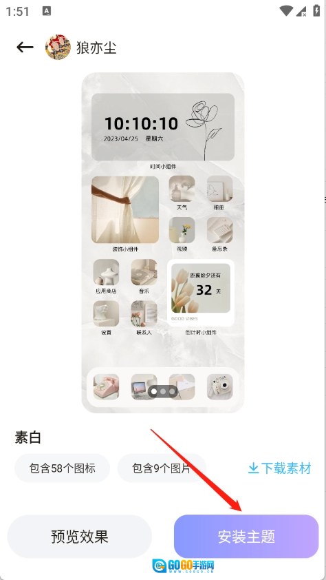 4、找到所需的主题资源并点击进入详情页面,随后点击“安装主题”按钮完成操作即可。