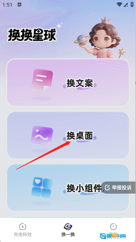 2、在换一换页面点击换桌面。