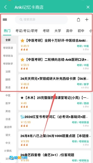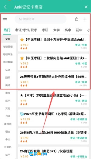 Anki记忆卡安装完成后,启动软件,接着点击软件资源(此步骤由团长操作)