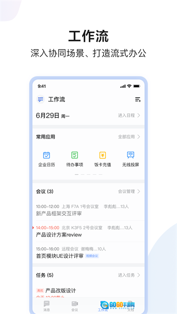 「智能提醒」功能可对日程安排进行智能通知,即时推送提醒信息,确保您不会错过任何一场会议。
