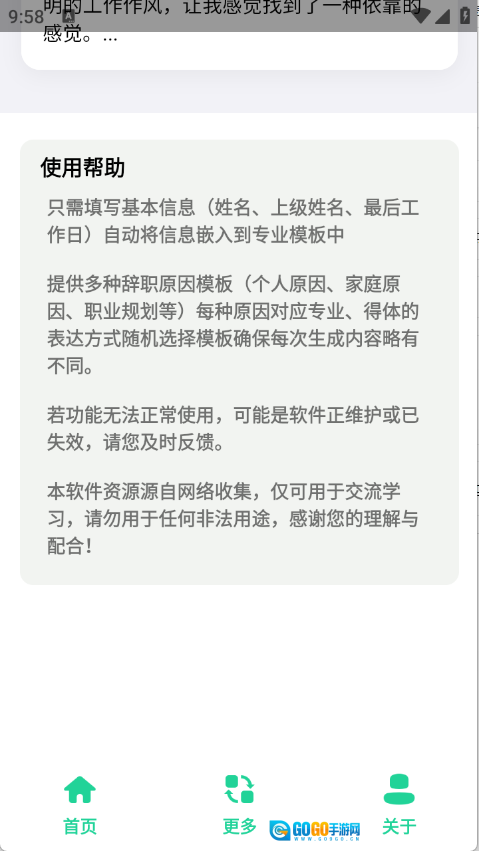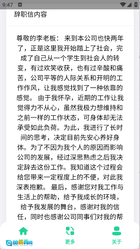 3、这是一款实用性极强的辞职信工具,能帮助大家一键生成高质量的辞职信。