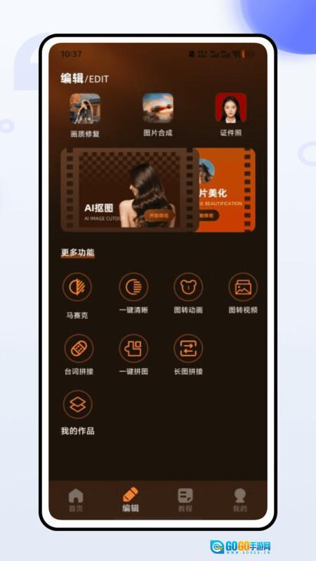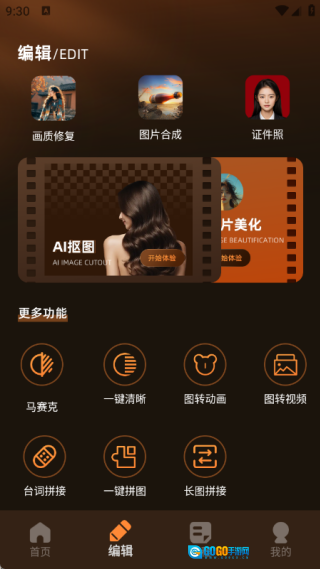 3、编辑页面里包含画质修复、图片合成、证件照制作等多项功能;