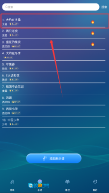 2、进入歌曲页面后,可在歌曲列表中选择目标歌曲,点击即可进入该歌曲的播放界面。