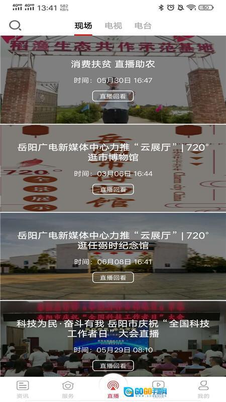 3、进入首页后,可点击岳阳直播、岳阳点播、岳阳发布等功能板块开展使用操作。