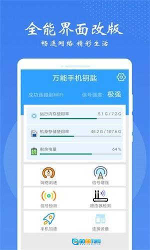 通过手机万能锁匙软件,您可以及时获取相关手机信息和数据,还能一键测速。