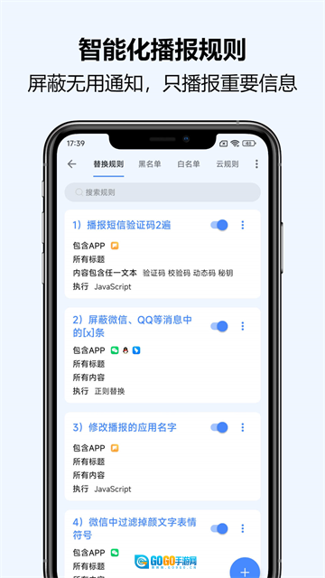 软件能依据用户的设置,智能过滤掉用户不感兴趣的短信,仅推送重要的通知信息
