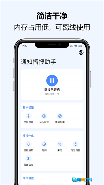 软件页面仅包含与播报相关的功能,页面颜色采用统一且纯净的白色设计