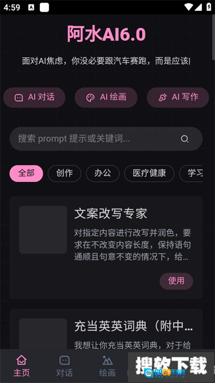 阿水AI6.0软件免费版作为一款全方位的AI工具平台,支持用户自动绘画与编辑功能,只需一键操作即可生成艺术作品或编辑图像;借助自然语言理解和深度学习技术,用户能够轻松获取专业级的绘画效果,同时该平台还可与用户展开对话互动。