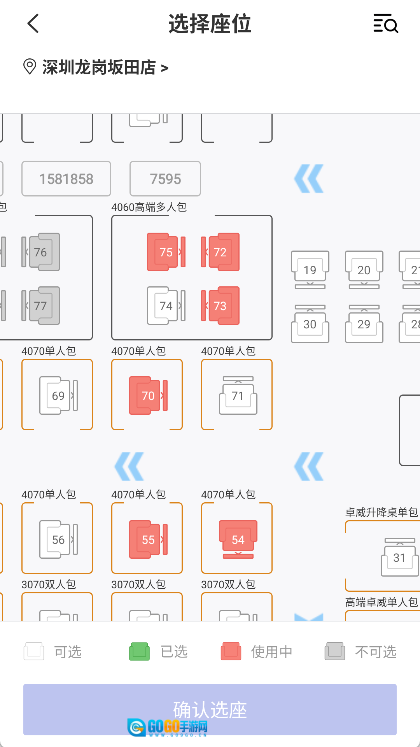 4、预订座位:选好门店后,查看该门店的座位布局图,然后依据布局图挑选一个令你满意的座位。