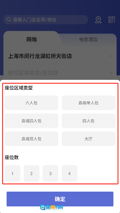 请根据实际需求挑选座位区域的类型,像普通区或者包间都可以,同时确定好需要的座位数量。