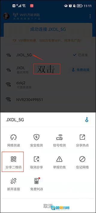 1、首先点击已连接的WiFi,接着对其进行二维码分享操作就可以了。