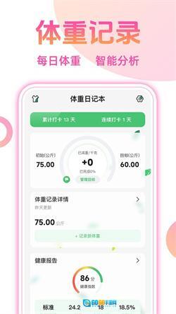 日复一日守护你的身体健康,体重本子为用户在线规划科学的饮食方案,助力正在减重的你精准记录实时数据。它还会分阶段生成专属健康报告,通过智能化分析体测数据,为你提供更高效的减重策略,并搭配合理健康的饮食建议,助你轻松达成减重目标!
