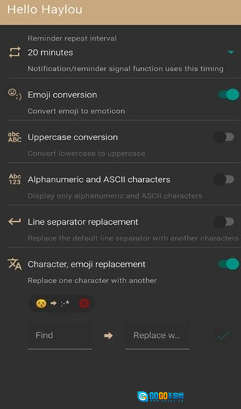 可以自己选择要替换的字符和表情符号。
