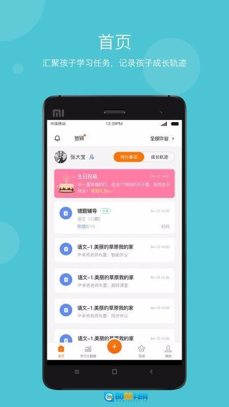 学乐云家校首页汇聚孩子的各项学习任务,能协助家长(爸爸或妈妈)更好地督促孩子按时完成作业。