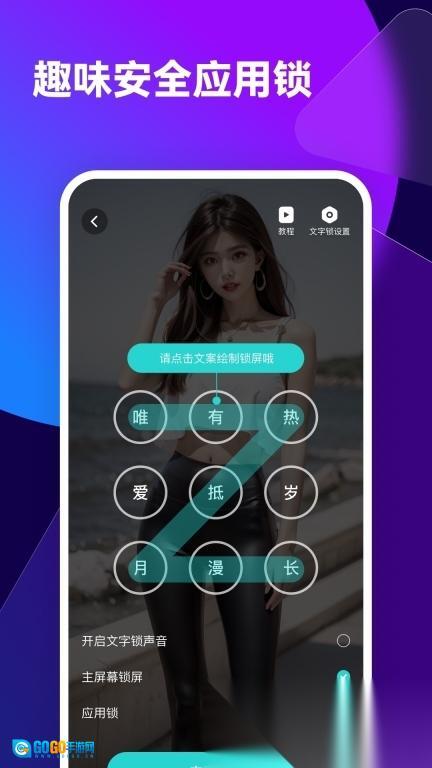 3. 别具一格的文字锁屏,多种唯美的样式可供挑选,使趣味性与安全感二者兼得。