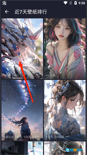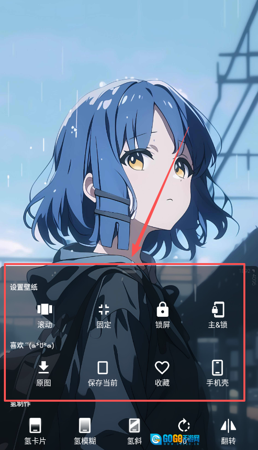 首先在主页挑选一张你钟爱的壁纸,像这张高达就很不错,接着调出菜单。