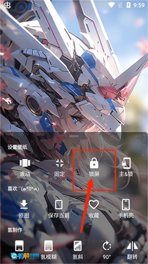 进入壁纸界面后,点击壁纸会弹出菜单,此时选择“锁屏”按钮,就能把该壁纸设为锁屏背景了。