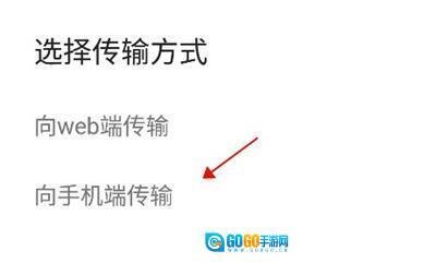选择传输方式,这里选择向手机端传输